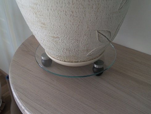 Trečia priežastis – įrengiant šildomas grindis, vazonines gėles tiesiogiai veikia šildomų grindų šiluma – jos greičiau džiūsta, reikalingas dažnesnis laistymas. Oro tarpas tarp stiklinio padėkliuko ir vazono apačios neleidžia gėlėms perdžiūti, suteikiamos natūralios sąlygos augalui.